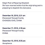 DO NOT USE THIS COMPANY! We ordered a Chricstmas Gift that promised delivery by 12/12... Here it is 12/20... Also said item was shipping FROM THE USA... Turns out it is coming from CHINA! The tracking has been the same everyday! "Processing thru distribution"