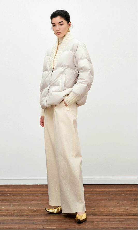 ZHUCHONGYUN White Wool Ribbed Down Puffer Knit Jacket-CHOI.