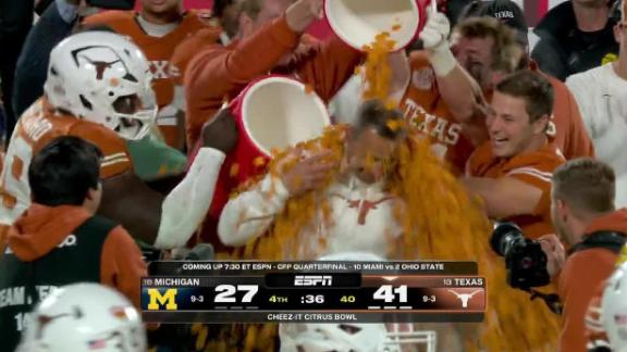 Steve Sarkisian gets Cheez-It shower after Texas' win