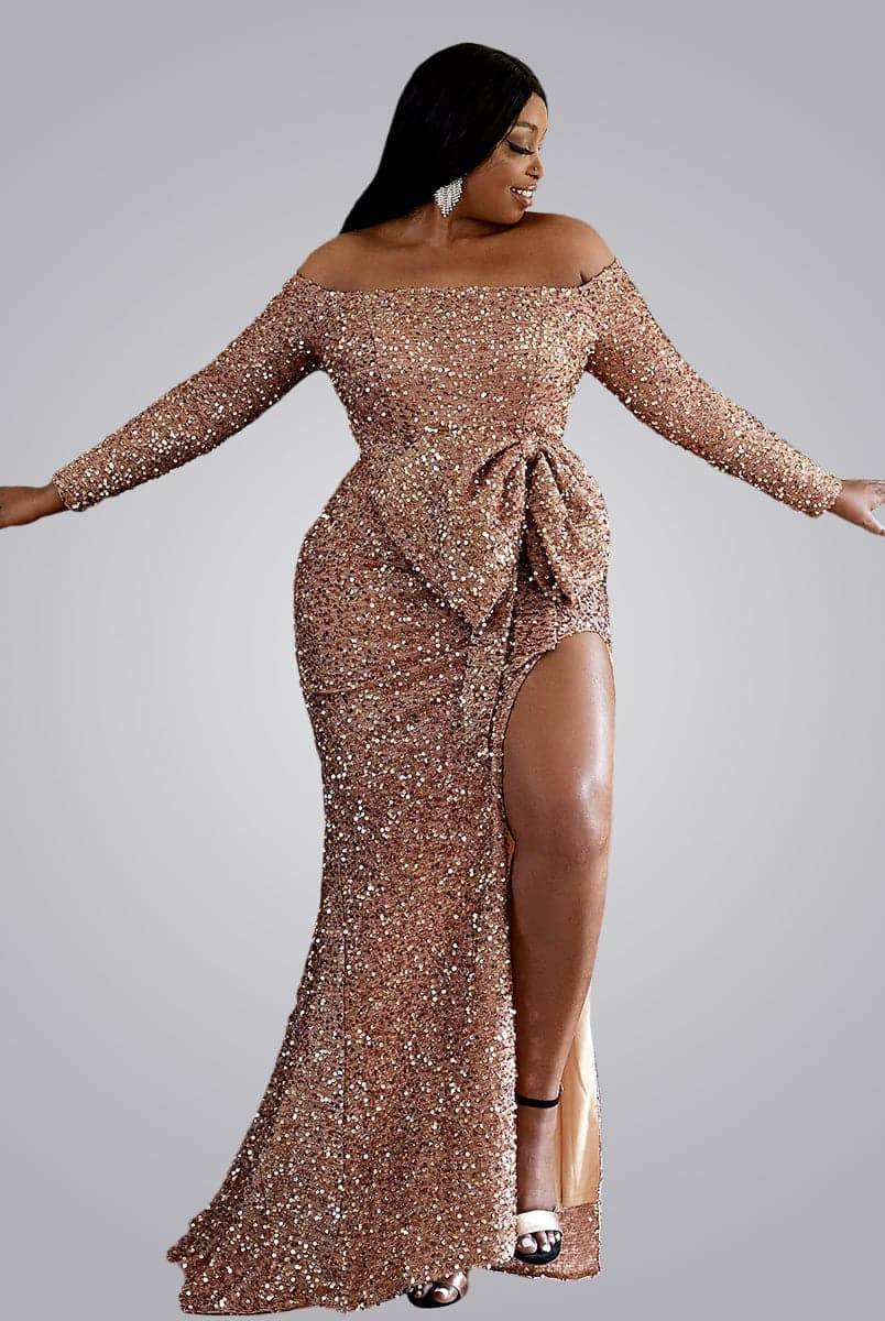 Plus Size Bow Knot Split Formal Dress PXH2122