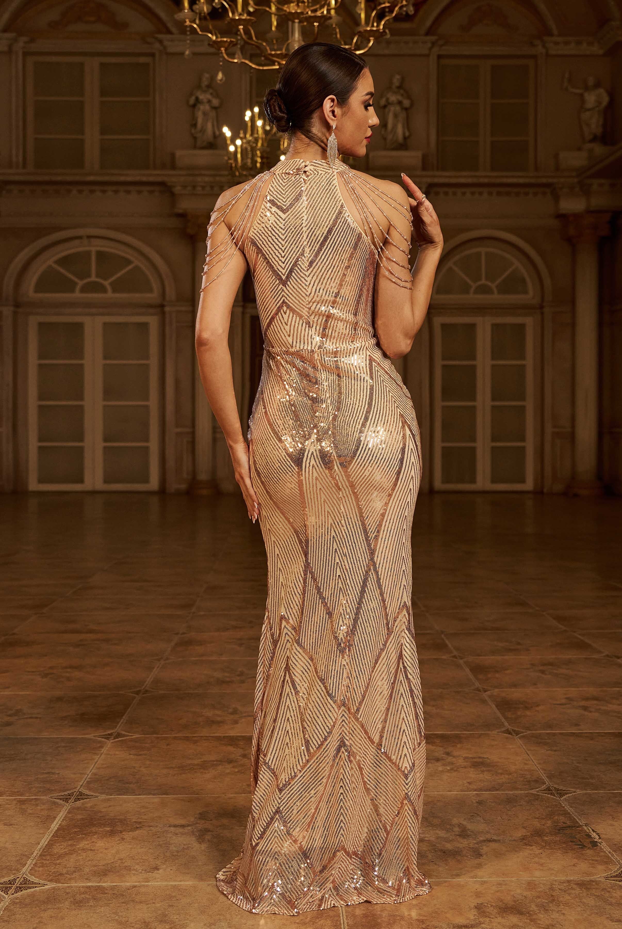 Cold Shoulder Beads Chain Cocktail Dress M01081