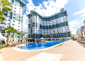 The complex is located just 20 meters from the sea, 500 meters from the center of Alanya and major shopping centers, and the distance to the airport is 45 km.