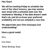 This company does not keep their word. They tell you your pictures will be sent to you within 2 weeks. I emailed them ten times and still have not received any pictures. We took our pictures in June 2018 and it is January 2019, still no pictures or reply to the emails. I brought up the reviews when I was contacted by her and she said those are individuals whose child didn't get picked up. Yet she says she represents all kids who are under her roster. This company is truly unprofessional. I would not believe those who rated her 4&5 stars. Most likely, they are fake. As you can see there are way more reviews saying not to use this company.