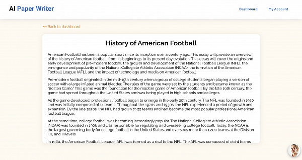 The content was impressively accurate, and it exceeded my expectations. This service is perfect for in-depth work, it's a valuable tool for busy students and professionals. I highly recommend AI paper writer for its incredible speed and efficiency.