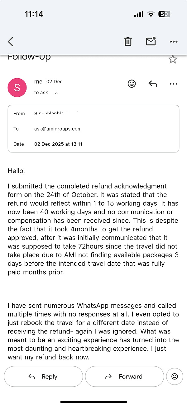 AMI Travel and Tours organized our 7-night Mauritius getaway, and it was perfect from the start. Sharlen coordinated every detail, from flights to resort transfers, making the experience completely stress-free. What stood out was their attention to personal preferences; they recommended excursions tailored to our family, like catamaran cruises and dolphin spotting. Midway through, we even received a complimentary hotel room upgrade, which was a wonderful surprise. The professionalism and personal care made this one of our best holidays ever. Highly recommended!