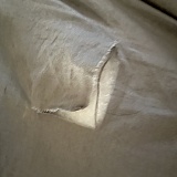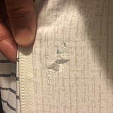 We have also seen this happen when the zipper has been pressed against a spot during the wash or dry cycle causing a small tear to form that can grow quickly unless it is patched or repaired.