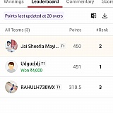 Dream11 app may ye log jo software chalaty hay o company fake id bnakar contest may join karty he our. Real id contest may last rank may aty hay... company har time player point kay hesab say change karti hay... sabky name daykho same2same hay sirf ank chenge hay...