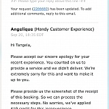 Handy.com has no regard for customer feedback. All they care about is taking your money. Avoid at all costs! They will not get back to you. They will have no interest to get back to you. All they care about is that they can continue to bill you for $#*!ty service.