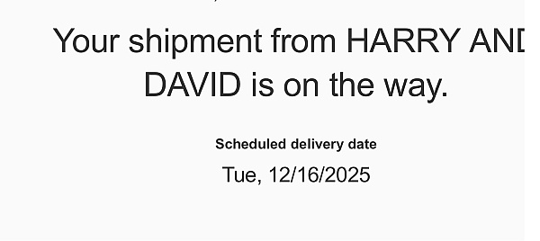 I have ordered from Harry & David for the past 3 years for Christmas gifts and have had no problem in the past. This year was a completely different story. I ordered a couple of holiday baskets and placed the order early (several weeks ago) to be delivered December 23rd. They still haven't been shipped the gifts and now if they come it will be after Christmas. Have been told several different things from customer service. First thing they said was something was wrong with my card (no) and then one delivery would arrive December 24 (it didn't). They charged me additional shipping charges of $42 which I am now disputing with my credit card company. When I saw the charges for shipping pending on my card I called their 1800 # and let them know. They said they wouldn't charge me and would follow up with an email confirmation (nothing sent). Funny how they don't meet their shipping deadline then try to pawn off excessive "express" shipping charges onto the consumer. Truly, a beyond dismal performance and I will not be ordering from them, again. Probably not a great idea for a large company like 1800Flowers to have bought them out in the first place. Customer service just tells you what you want to hear and then act unethically in what actual takes place. It's an overseas call center and it is very difficult to communicate with their customer service representatives as they seem poorly trained to solve anything efficiently. Honestly, just wanted to keep it simple and give someone else some business other than Amazon (who frankly has been great to deal with).
