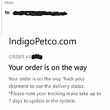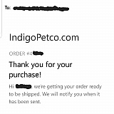 10/9/19 - have not received order, Reached out to Indigo Petco on status.