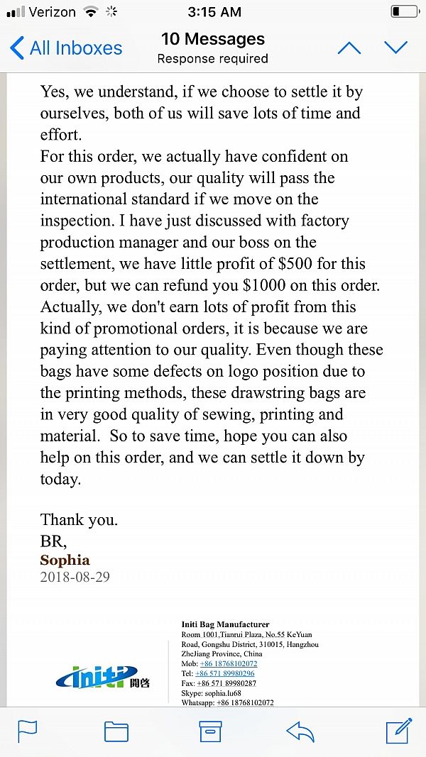 This company is a scam! Do not do business with this company! I ordered 10.000 bags all defective as the printing was off center. They admit to the bags being screwed up and leave you stuck with the product.