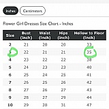 Used their chart measurement for my daughter and was wrong. After back and forth e-mails, they wouldn't exchange for the correct size. The wedding is in 3 weeks so I bought a larger size and paid another $21.99 in shipping. I emailed them the dress measurements next to a tape measure with the website not correlating in size and they still refused an exchange. If my cousin didn't ask to buy from this store specifically to match the other flower girl dresses, I would never buy from this site! What a rip off. I can find a better quality dress from Amazon with cheaper shipping.