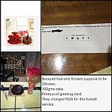 Take me seriously I had the worst experience today on valentines day, worst mistake I made by buying from them, order id #*******I ordered a Rainbow Rose Cake, you can see what the delivered in my attachment, see for yourself how I got cheated badly. What I ordered and what I got has NO RESEMBLANCE AT ALL! These