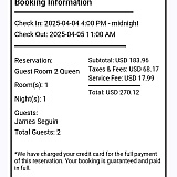 Thank you for bringing this to our attention, James. We sincerely apologize for your experience and any inconvenience this caused you. I will immediately share your feedback with our support team so we can look into this further. If you need assistance with your reservation, please don’t hesitate to contact us at support@reservationdesk.com. We're here to help!