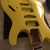 All good things come to those that wait, and sometimes that just makes it sweeter. Took just a little bit longer than planned but I got my old pal 1989 Ibanez 540SLTD body back from Patrick today restored to its original Desert (neon) Yellow and all I can say is WOW. I was worried no one would really do the proper DY color on this, especially after many years of my Sharpie scribbling and spray painting over it... ruining it basically. Sent it to Patrick and held my breath; he hunted me down online (after I'd switched all my contact info without him knowing) and contacted me last week. Unboxing it today was a revelation. The color is incredible, the PERFECT Desert Yellow, super saturated and clean, the lacquer shine is like glass, perfectly smooth, super reflective. Might be nostalgia talking but I swear it looks better than it did at Sam Ash in 1989. Today is a good day: thanks Patrick!