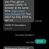 "Walgreens: Your flu shot is waiting for you. Plus, get an updated COVID-19 booster at the same time: wlgrn.com/SAschedappt/GE Text HELP for FAQ, STOP to opt out"