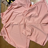Ugly mustard yellow pants with literal plastic bag pockets and t-shirt thin material. The attached card suggests hand-wash only and drip dry, no kidding. I'd hate for them to melt in my dryer.