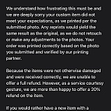 So I ordered my stepdaughters graduation picture to be printed on the big heads or whatever it's called. I'm not 100% sure and today the order came in and it was a child that I had never seen before in my life clearly not female clearly not Hispanic. I contacted customer service. I contacted corporate office and their response which I am going to post the pictures that I received and the response that I received they are claiming that they will only accommodate me 20% refund because they don't feel that there was anything wrong with the photos? They are simply giving me the 20% because I put a complaint pretty much there's everything wrong with this photo it's not submitted. It's not my stepdaughter this poor family isn't gonna receive their order and I'm sure they're gonna hassle them as a hassle me I should be entitled for a full refund and they should give me the proper item that I put.