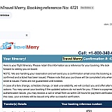 I was referred through skyscanner. After booking and paying, a notification popped up that I needed to call *******853 to "verify payment." An outsourced foreign call center picked up and said they would send me an email confirming my booking, except he claimed to change my flight to a different airline but for similar times. I waited on the line with the person and the email never arrived. Then he said to send *******@travelmerry.com an email and he would reply with my details. That email never arrived. I checked on the airline's website for the new flight that he claimed to book for me and no such flight existed. Shame on skyscanner for referring an obvious scam. I'll be using kayak.